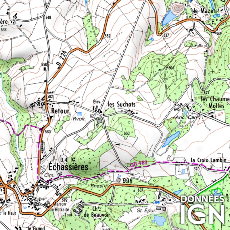 Carte topographique du département français de l'Allier (03) au 1 : 25 000.