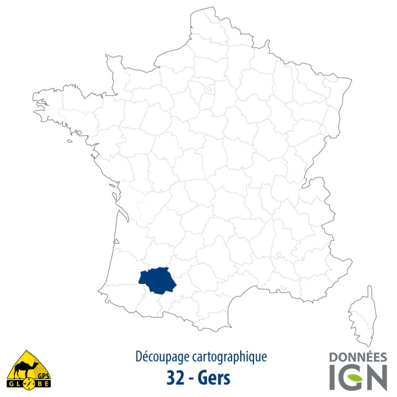 Carte topographique du département français du Gers (32) au 1 : 25 000.