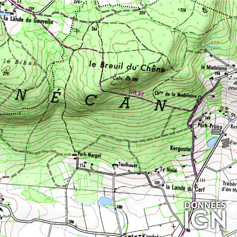 Carte topographique IGN du département français du Morbihan (56) au 1 : 25 000.